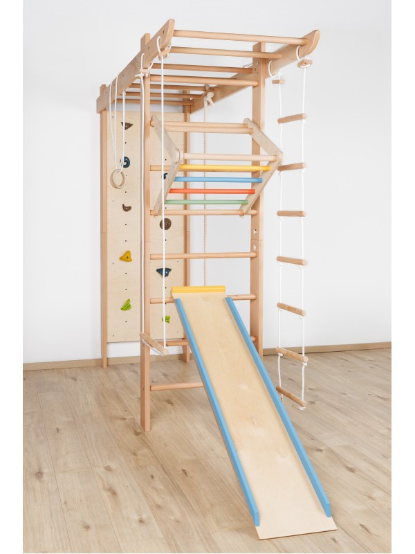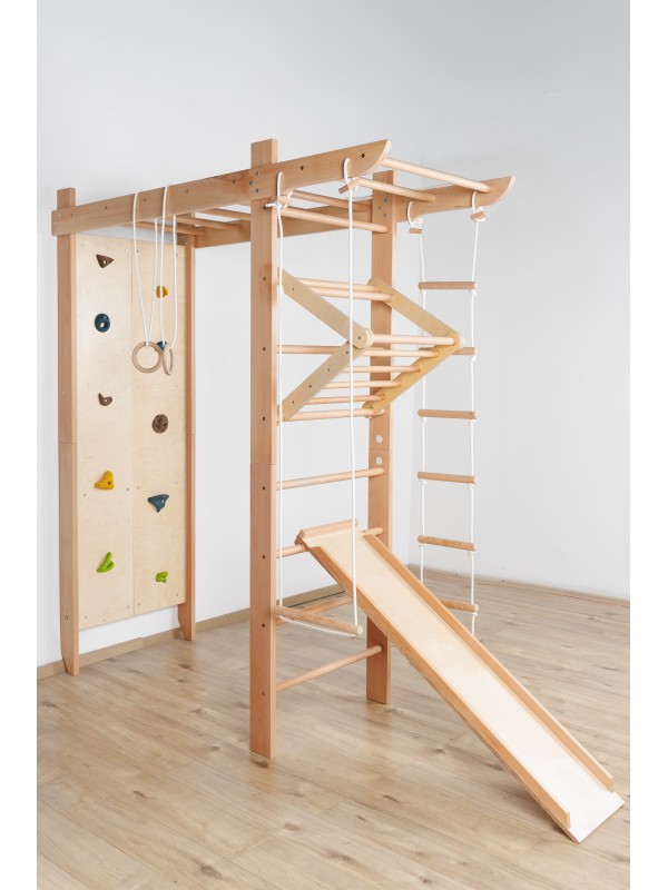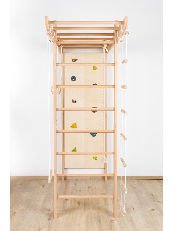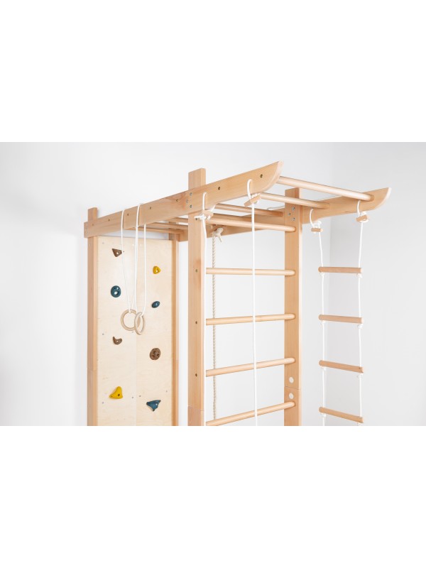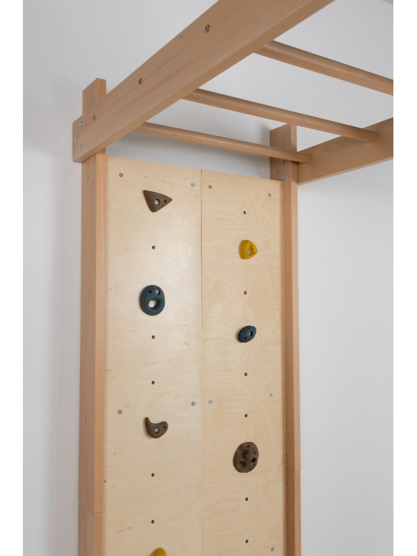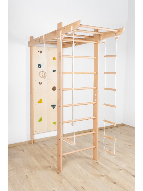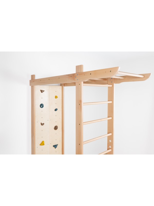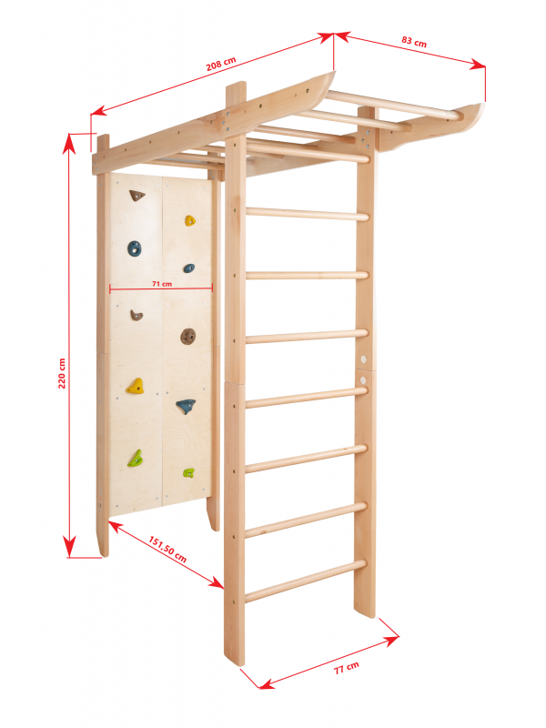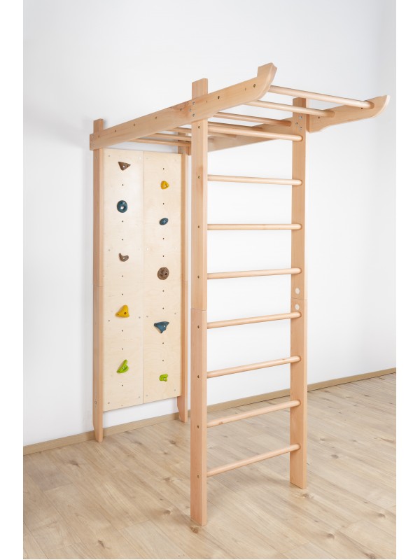 Többfunkciós beltéri felszerelés játékra, mozgásra és edzésre minden generáció számára. A masszív bükkfa biztosítja a stabilitást, a biztonságot és a kellemes természetes megjelenést, míg a jól átgondolt kialakítás ösztönzi a mozgást és a közös időtöltést.