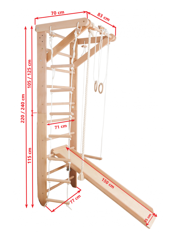 - Anyag: kiváló minőségű bükkfa (a mászóka oldalpanelei két részből állnak).