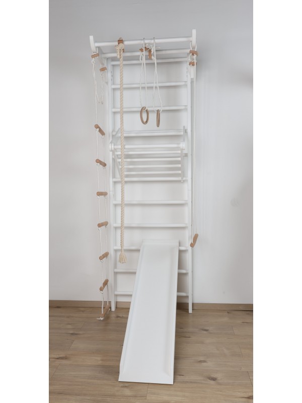 KINDER 5 fehér fa svéd létra kiegészítőkkel – biztonságos és sokoldalú sportfelszerelés az egész családnak!