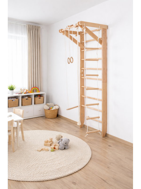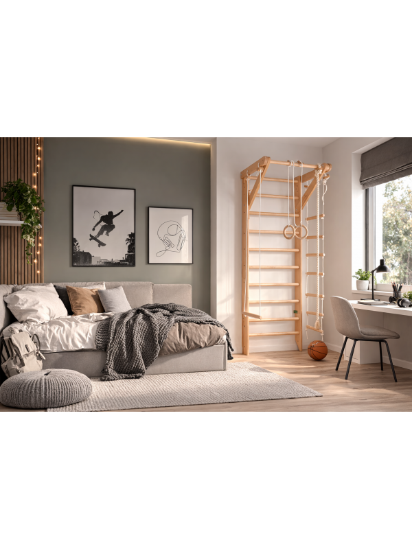 A Sport modell falra szerelhető tornalétra tökéletes választás kisebb gyerekszobákba, mivel kevés helyet foglal. Alkalmas mind a hagyományos gyereksarkokba, mind a legkisebbek számára kialakított játékterekbe. Rendkívül tartós, és a maximális teherbírást figyelembe véve még a felnőttek is használhatják. A tornalétrán végzett gyakorlatok különböző izomcsoportokat erősítenek, javítják a rugalmasságot és gyorsaságot, valamint játék közben fejlesztik a gyermek koordinációját és mozgásos készségeit.